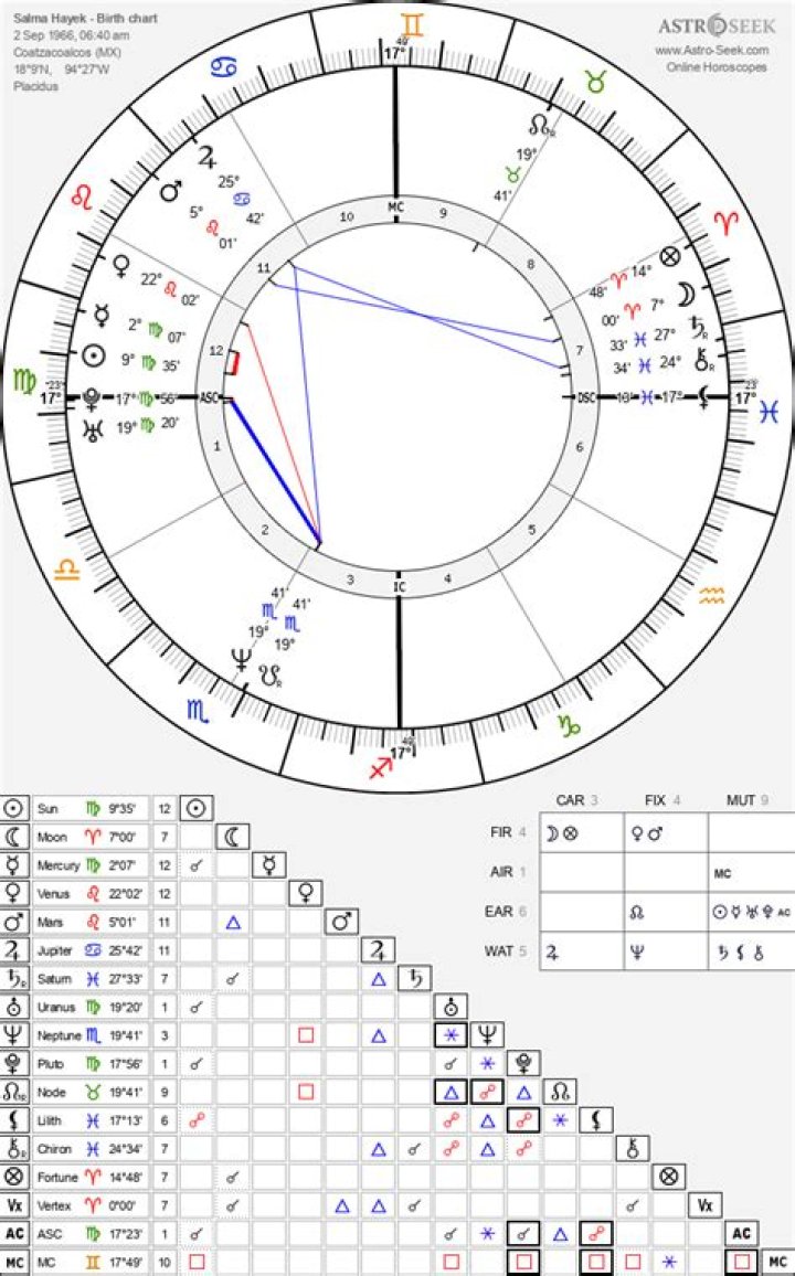 Answer: Salma Hayek's horoscope reveals a complex and multifaceted personality, shaped by a combination of Virgoan analytical and practical nature, Sagittarian adventurous and optimistic spirit, and strong influences from Venus in Leo and Mars in Virgo. Understanding these astrological influences provides insights into her motivations, career trajectory, and personal life.